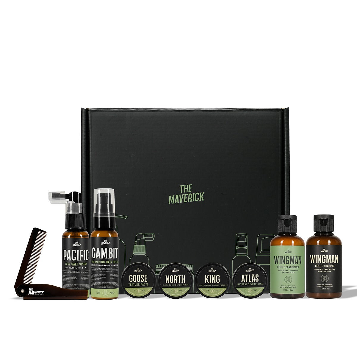 Introducing the Discovery Set, the most balanced and complete collection of products for men's hair styling and hair care. This set includes a variety of Maverick's products designed to meet all your hair care needs, from cleansing to styling, all conveniently packaged in a gift box with a free pocket fidget comb.